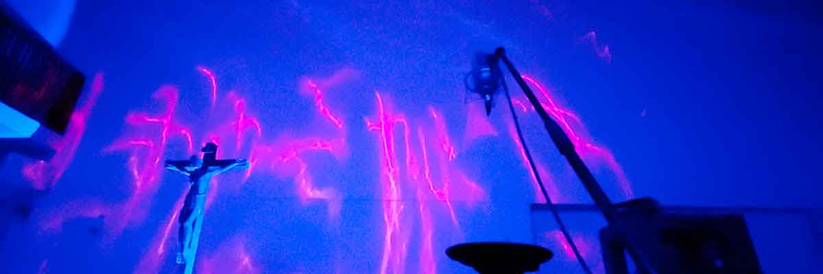 Auch mit Illuminationen (Innen und Außen) und -Installationen schafft er Orte die zum Nachdenken, Wundern und Staunen anregen.