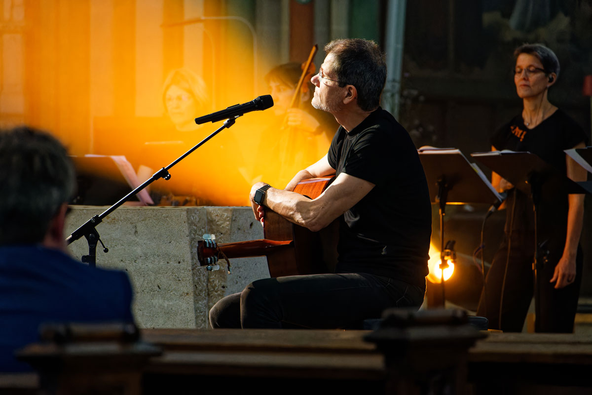In seinen Chor-Workshops und –Projekten vermittelt er neben den musikalischen Mitteln (Perkussives Singen), auch den philosophischen Inhalt seiner Lieder.